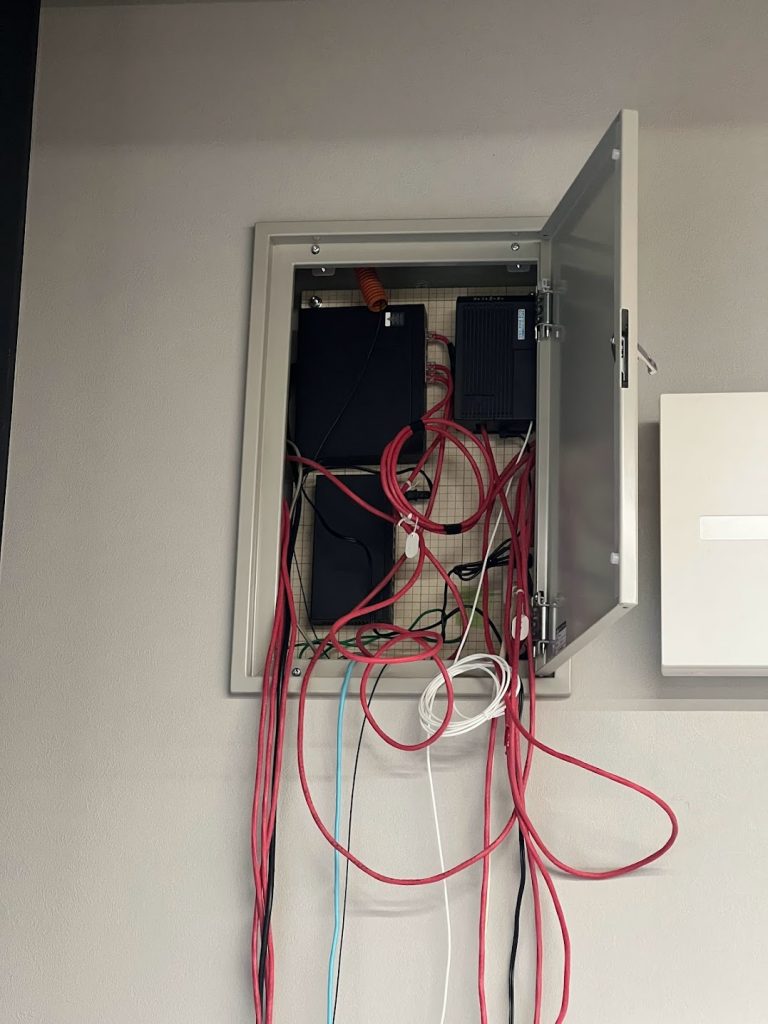 HUBやPoEインジェクタはキャビネット内に設置し、オフィス内をスッキリとした配線で仕上げました。